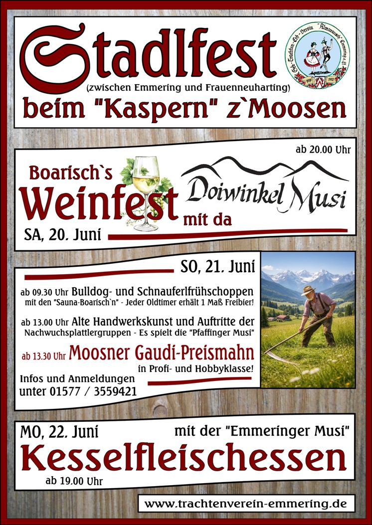 Die Seitn-Schreiberling möchtn auf zahlreichn Seitn den Emmeringer Trachtenverein vorstelln, de Vereinsarbat darstelln und oiwei möglichst aktuell berichtn. Schaut`s as enk einfach o!