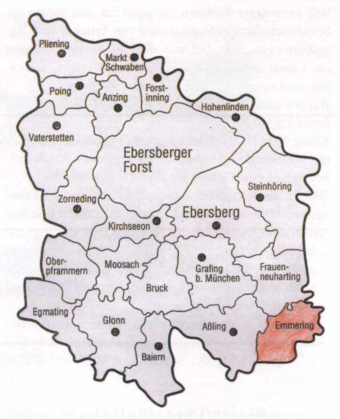 Die Gemeinde Emmering im äußersten Südosten des Landkreises Ebersberg besteht in ihrer heutigen Form erst seit 1978, als sie im Zuge der Gebietsreform neu gebildet wurde.